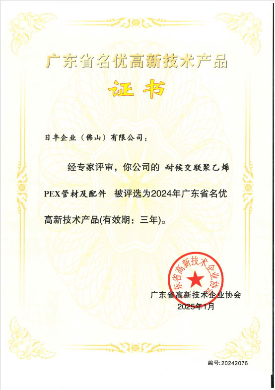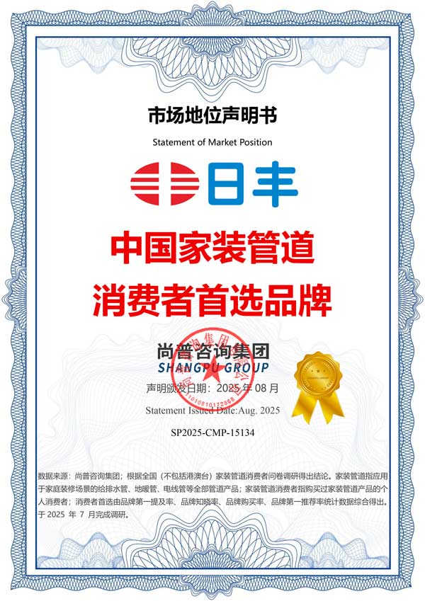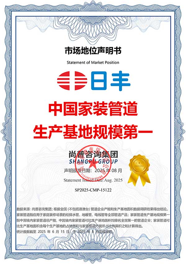 經過十多年的發展,日豐已發展成為國內管道行業的領先品牌。為了更好地滿足市場和用戶需求,2007年,日豐又推出PP-R管。憑借突出的研發優勢、卓越的產品品質與強大的品牌影響力,日豐在PP-R行業迅速崛起。