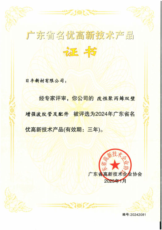 日豐是國家技術創新示范企業、國家火炬計劃重點高新技術企業、廣東省戰略性新型產業骨干企業、廣東省創新型企業、廣東省知識產權優勢企業,建有國家級企業技術中心、廣東省復合管道系統工程技術研究開發中心、廣東省企業重點實驗室和新型管道研究院等技術創新平臺。