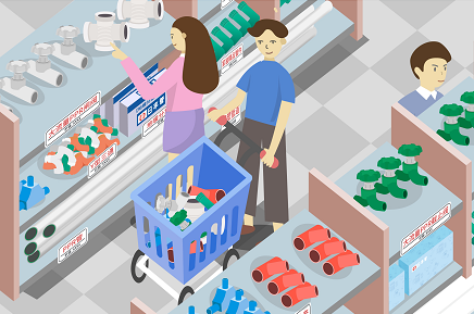 瞧,他們正在日豐管門店挑選自己心儀的產品