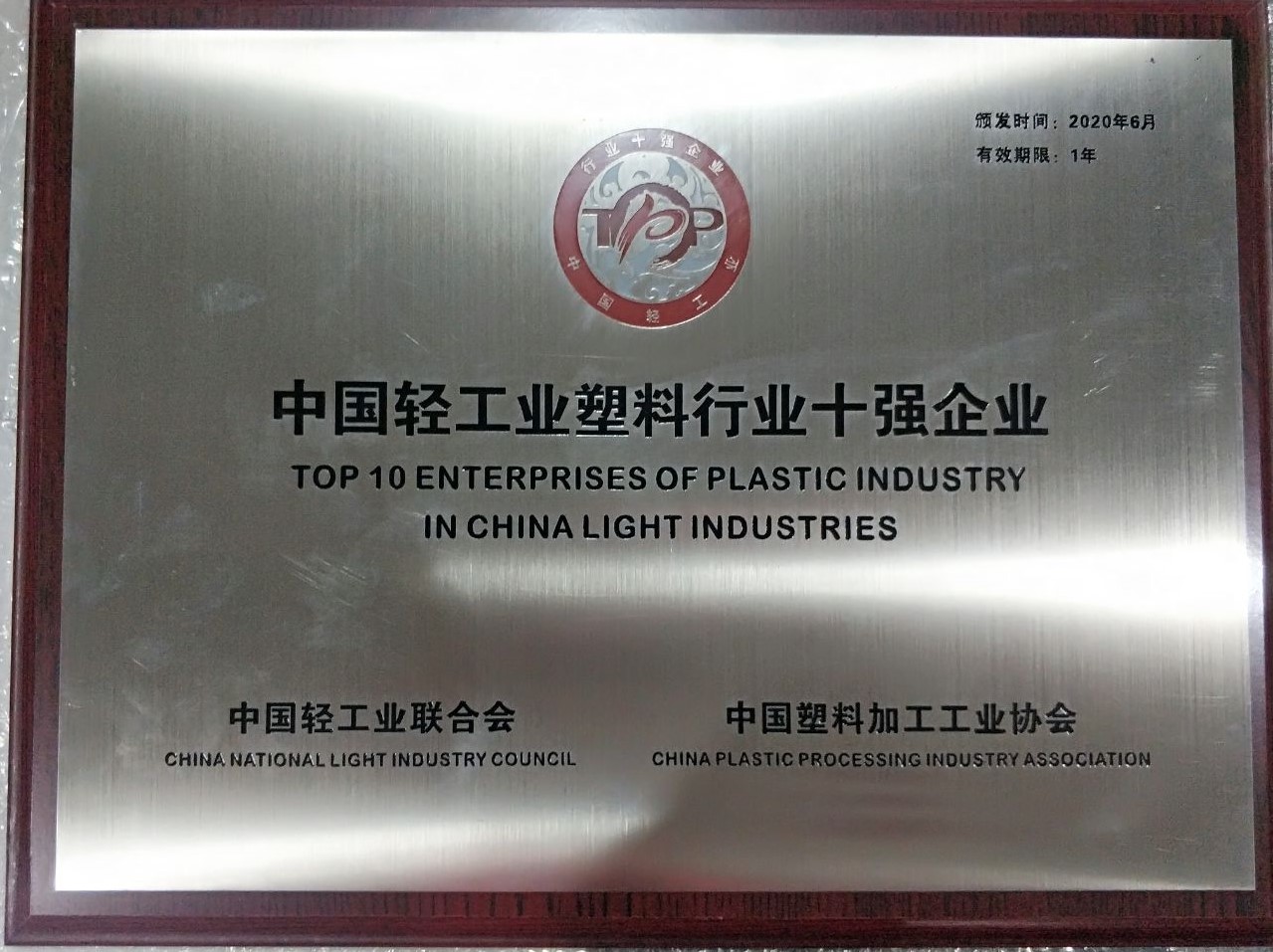 中國輕工業(yè)塑料行業(yè)十強(qiáng)企業(yè)