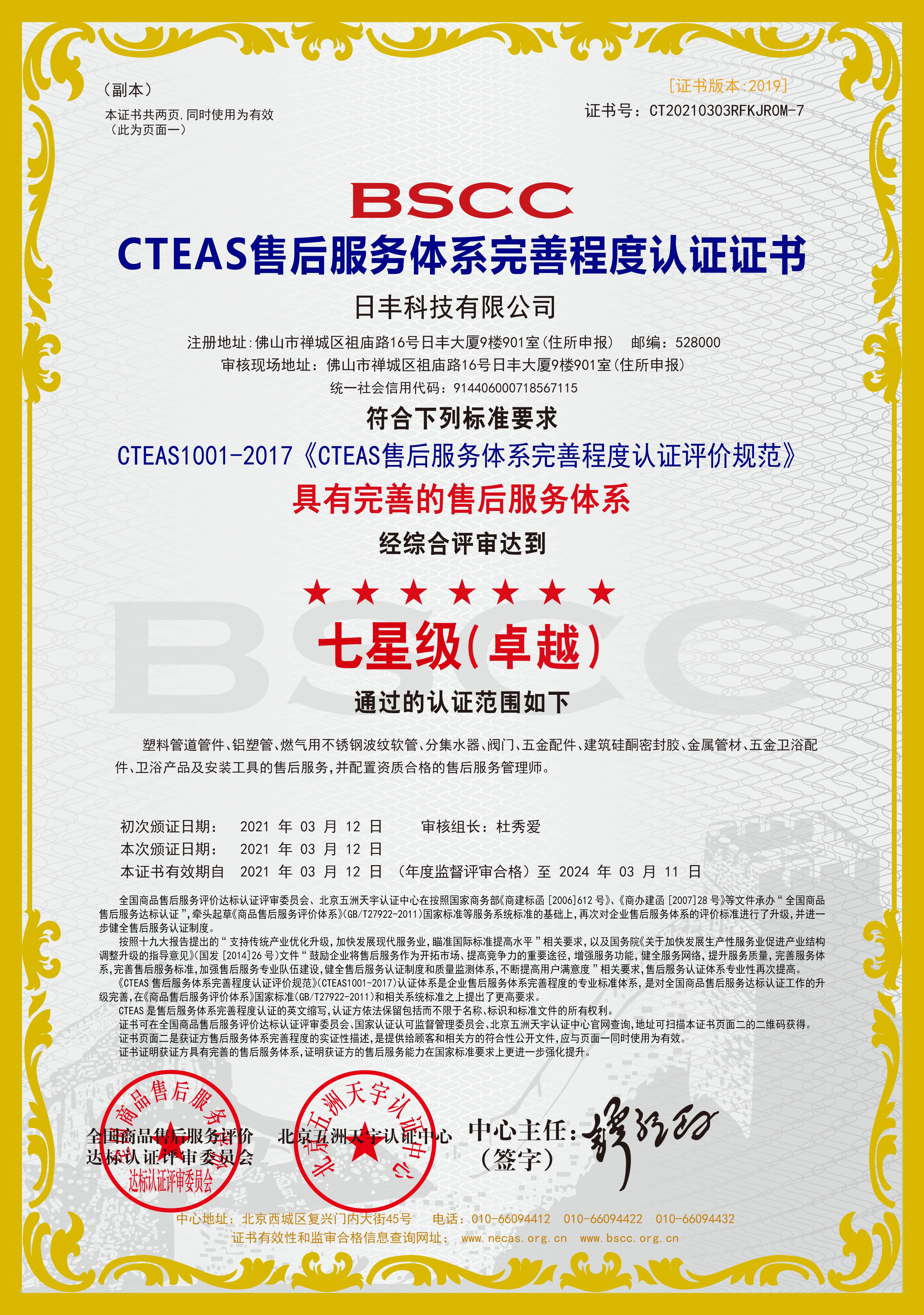 日豐科技售后服務(wù)體系完善程度認(rèn)證